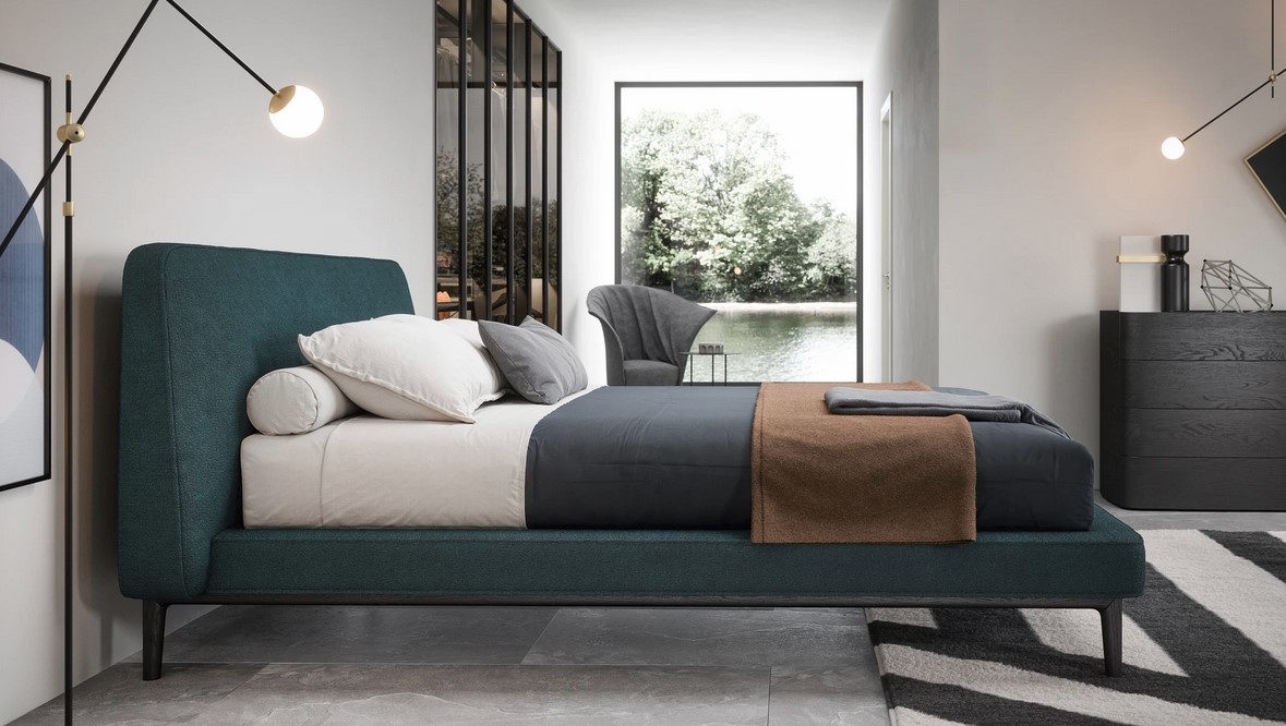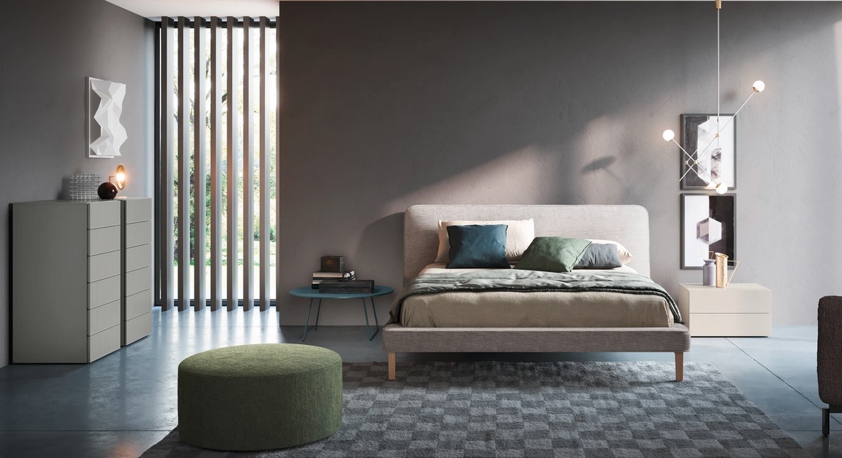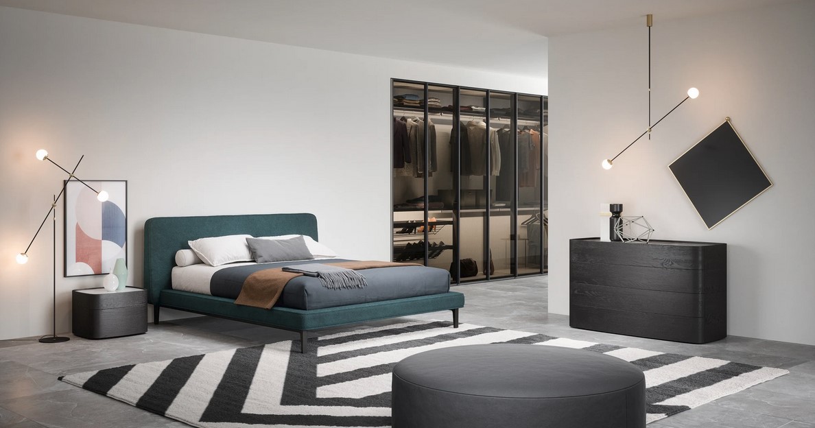 Linee contemporanee e particolari ricercati definiscono la zona notte in un equilibrato dialogo di forme e materiali.